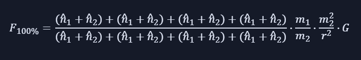 Dadurch ergibt sich diese Formel, für die Kraft die zwischen Materie und Antimaterie wirkt: