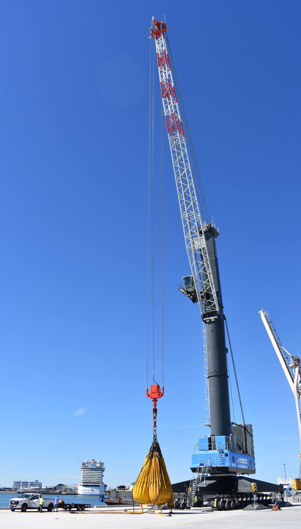 Der LHM 600 Kran im Port Canaveral ist fertig zusammengebaut.