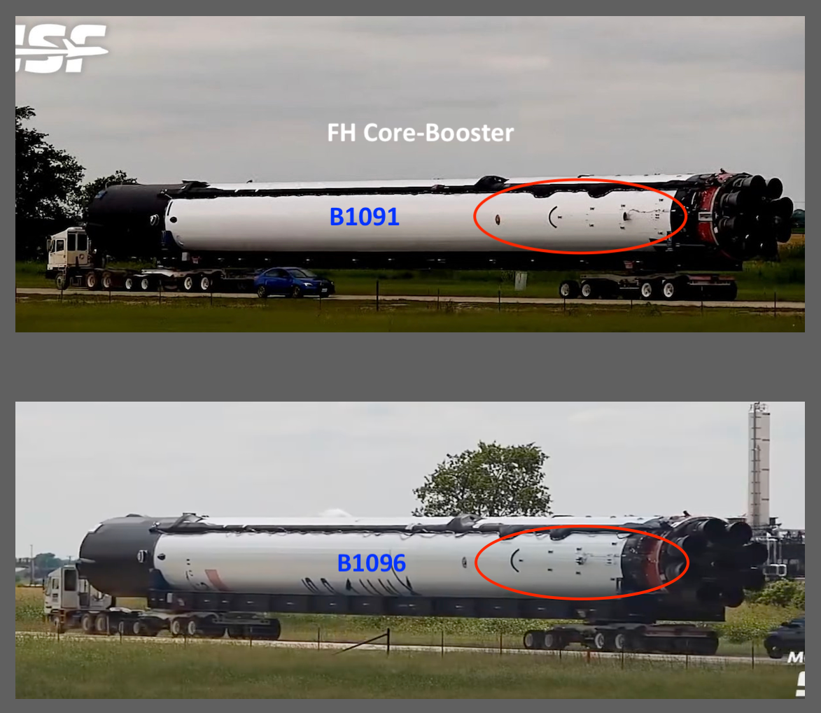 einen brandneuen F9 Booster entdeckt, vermutlich B1096 ... allerdings hat der auch diese "Befestigungspunkte"
