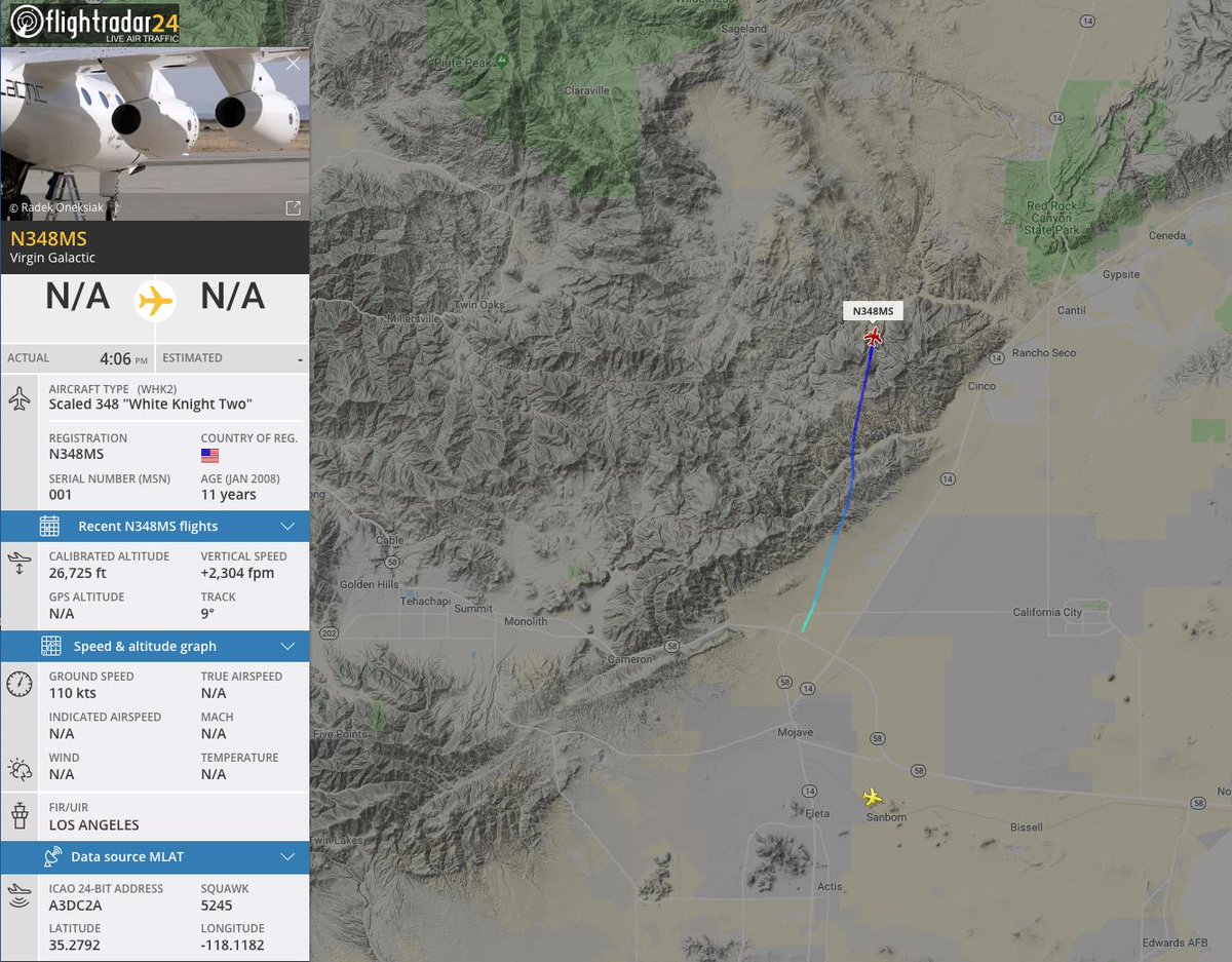 Today is flight number 264 for WhiteKnightTwo and number 16 for SpaceShipTwo Unity