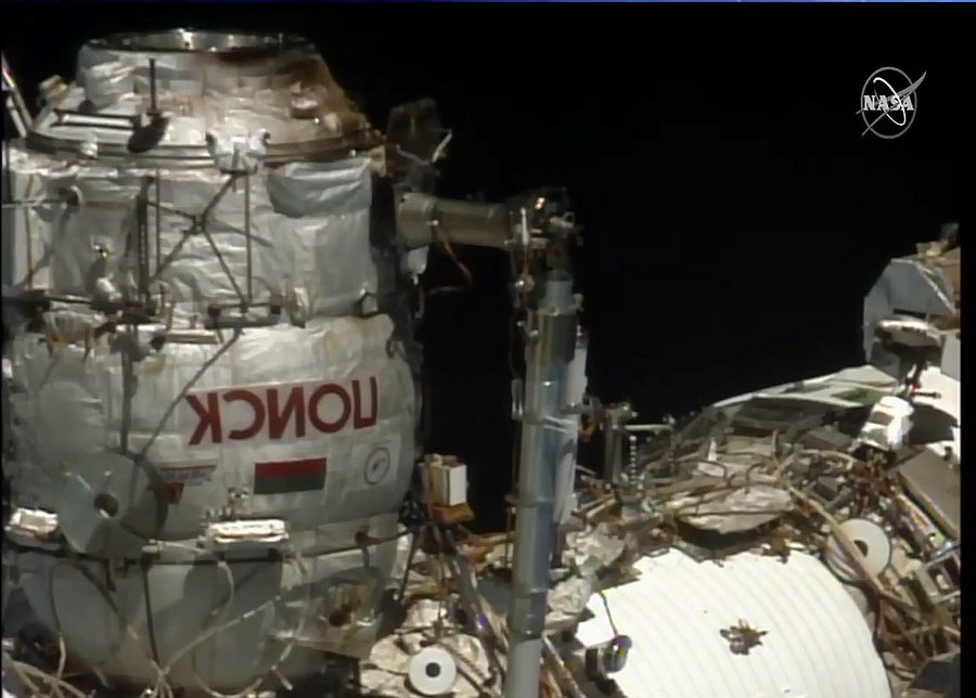 Die Kosmonauten bereiten ihre Raumanzüge nun für den autonomen Betrieb vor. Das erfolgt offenbar noch im Inneren von POISK.