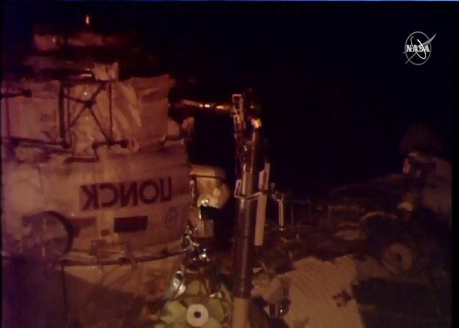 ISS kommt wieder in den Tagbereich und die EVA geht nun 1 Stunde ...