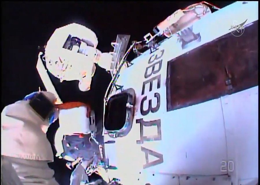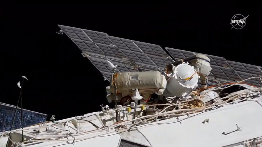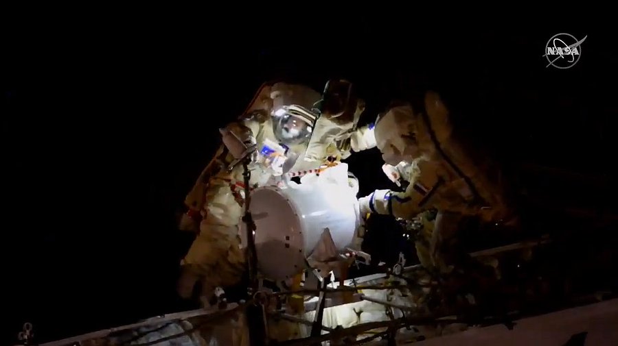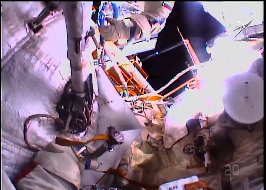 Das Teil, das am Anfang des Ausstiegs wegflog, war ein Stück der weichen Umhüllung des Handlafs am Druckbehälter, so der Pressedienst von Roskosmos ...