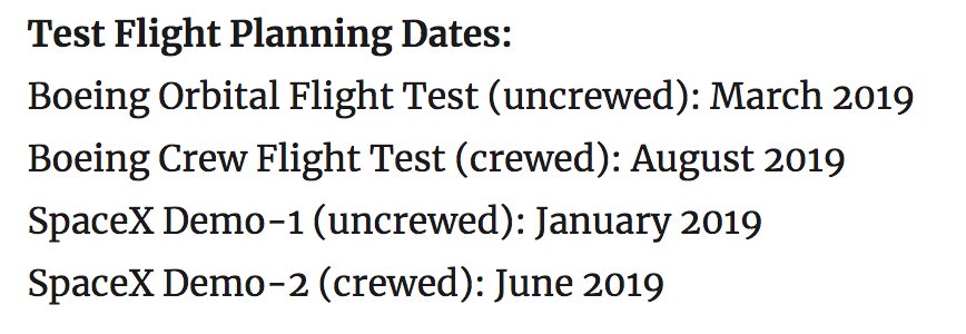 - die Verlängerung der Soyuz Flüge um mehr Zeit für CCP zu gewinnen wurde beschlossen. Man hat damit jetzt bis Januar 2020 Zeit für die Zertifizierung, vorher war Herbst 2019 das Ende der Frist