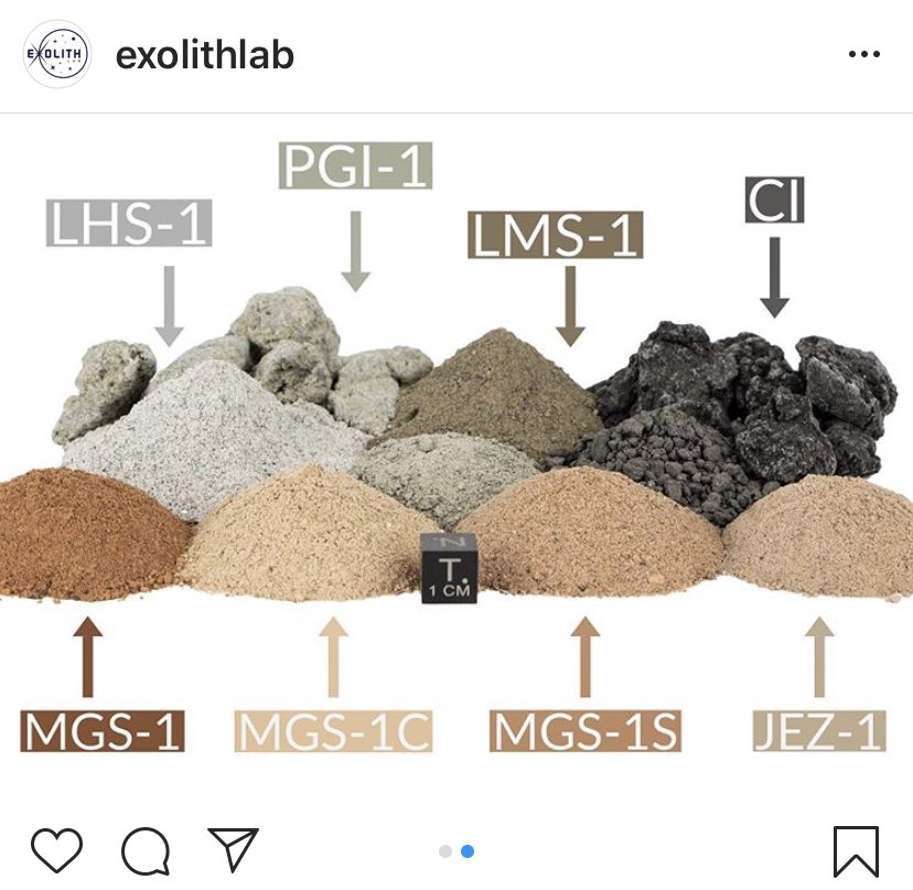 Ich bin bei Twitter über ein interessantes Bild mit verschiedenen 4 Mars-regolith simulants (+2 für den Mond und 1 für asteroid ) gestoßen: