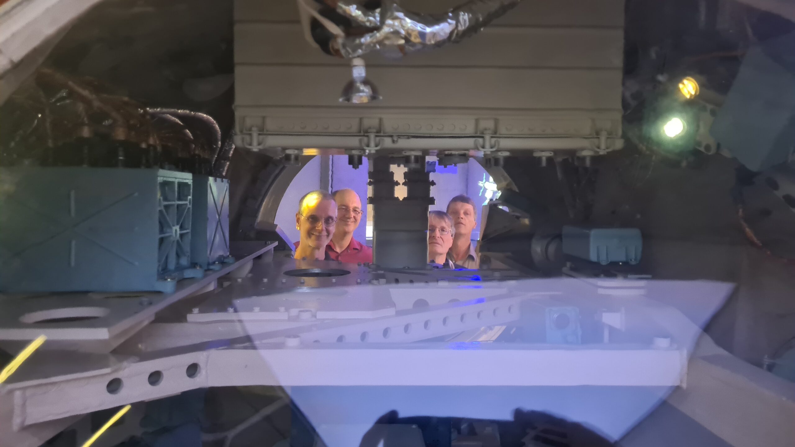 Beim Versuch das Innere der Kapsel durch eine Plexiglasabdeckung zu fotografieren, haben sich einige Besucher als "Fotobomber" betätigt  (Bild: Stefan Goth):