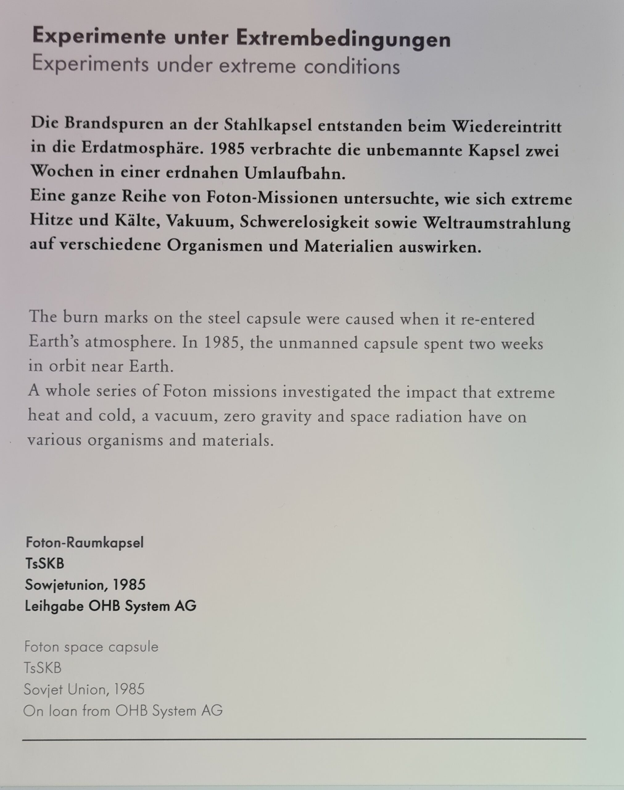 Es gab auch geflogene Hardware zu sehen, eine Foton-Kapsel aus Sowjet-Zeiten: