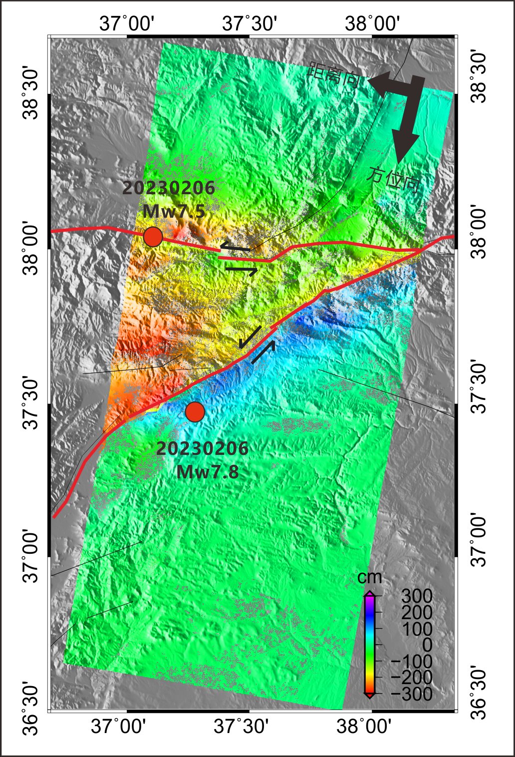 Das Oberflächendeformationsfeld nach dem Erdbeben in der Türkei, aufgenommen von LT-1-01-Satelliten.
